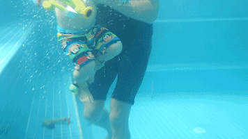 当教学进入后期,孩子掌握技能后,就会开展水中技能拓展教学。