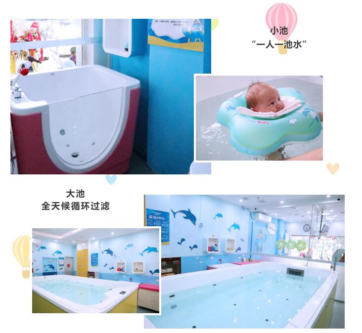 场内使用的恒温水是采用空气能设备,保证宝宝们洗澡的时候有最适宜的水温和室温,让宝宝们的安全有最大的保障。